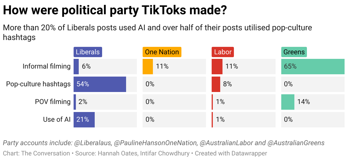 More than 20% of Liberals posts used AI and over half of their posts utilised pop-culture hashtags