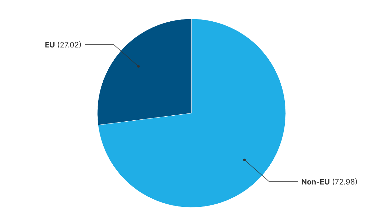 In the 1st quarter of 2025 the total gross tonnage was 1682 million*; the percentage of GT as per ownership's (nationals/companies) domicile was: