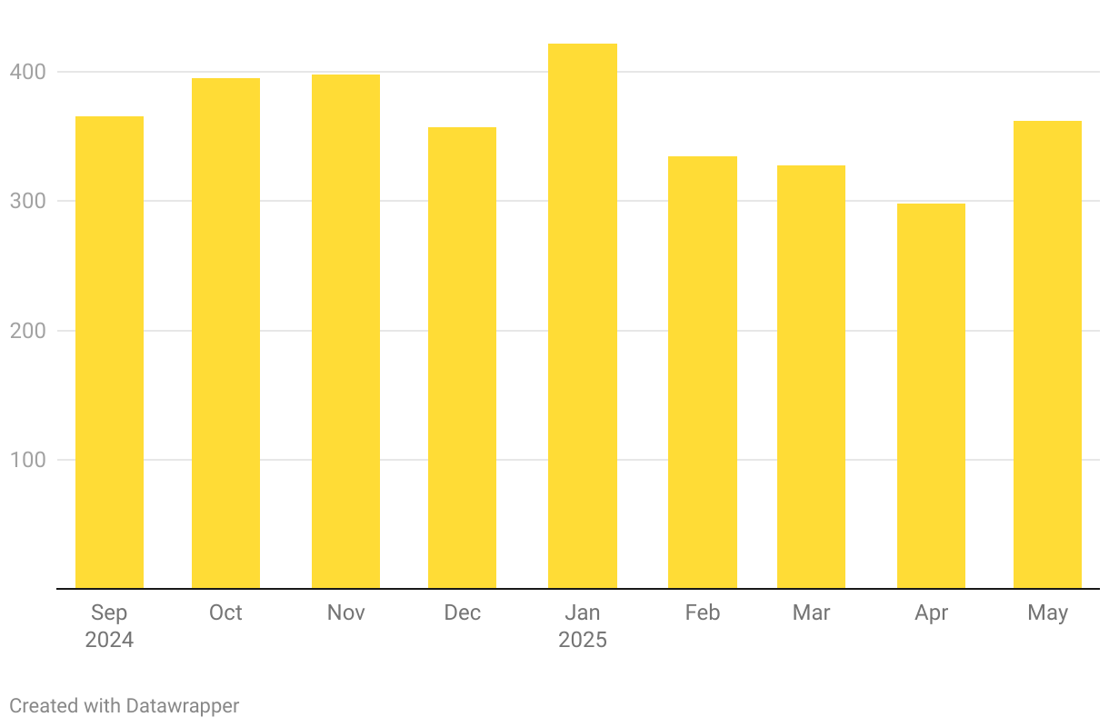 * The 2024–2025 average is based on delays that took place through May 19, 2025. The school year ends on June 26, 2025.