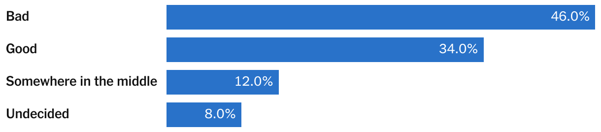 Percentage of votes received for are the NBA’s gambling partnerships good or bad for the league, and why, via The Athletic's polling of players. A total of 150 responses tabulated.