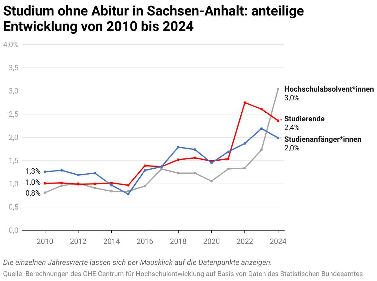 Studium ohne Abitur in Sachsen-Anhalt: anteilige Entwicklung von 2010 bis 2024