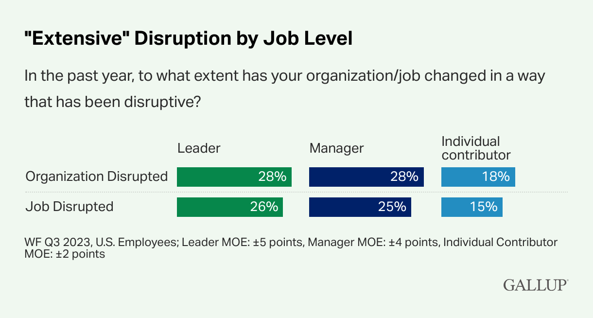 In the past year, to what extent has your organization/job changed in a way that has been disruptive?