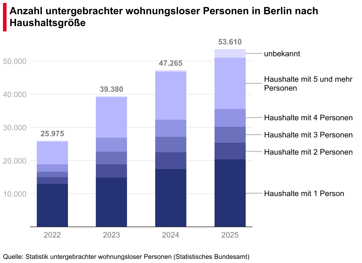 Anzahl untergebrachter wohnungsloser Personen in Berlin nach Haushaltsgröße