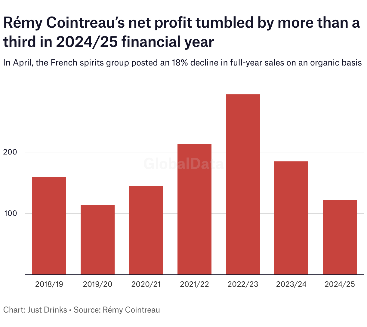In April, the French spirits group posted an 18% decline in full-year sales on an organic basis