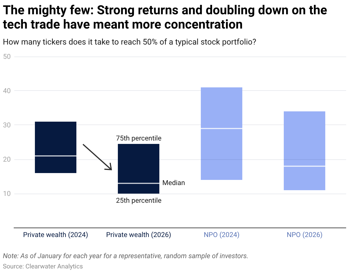 How many tickers does it take to reach 50% of a typical stock portfolio?