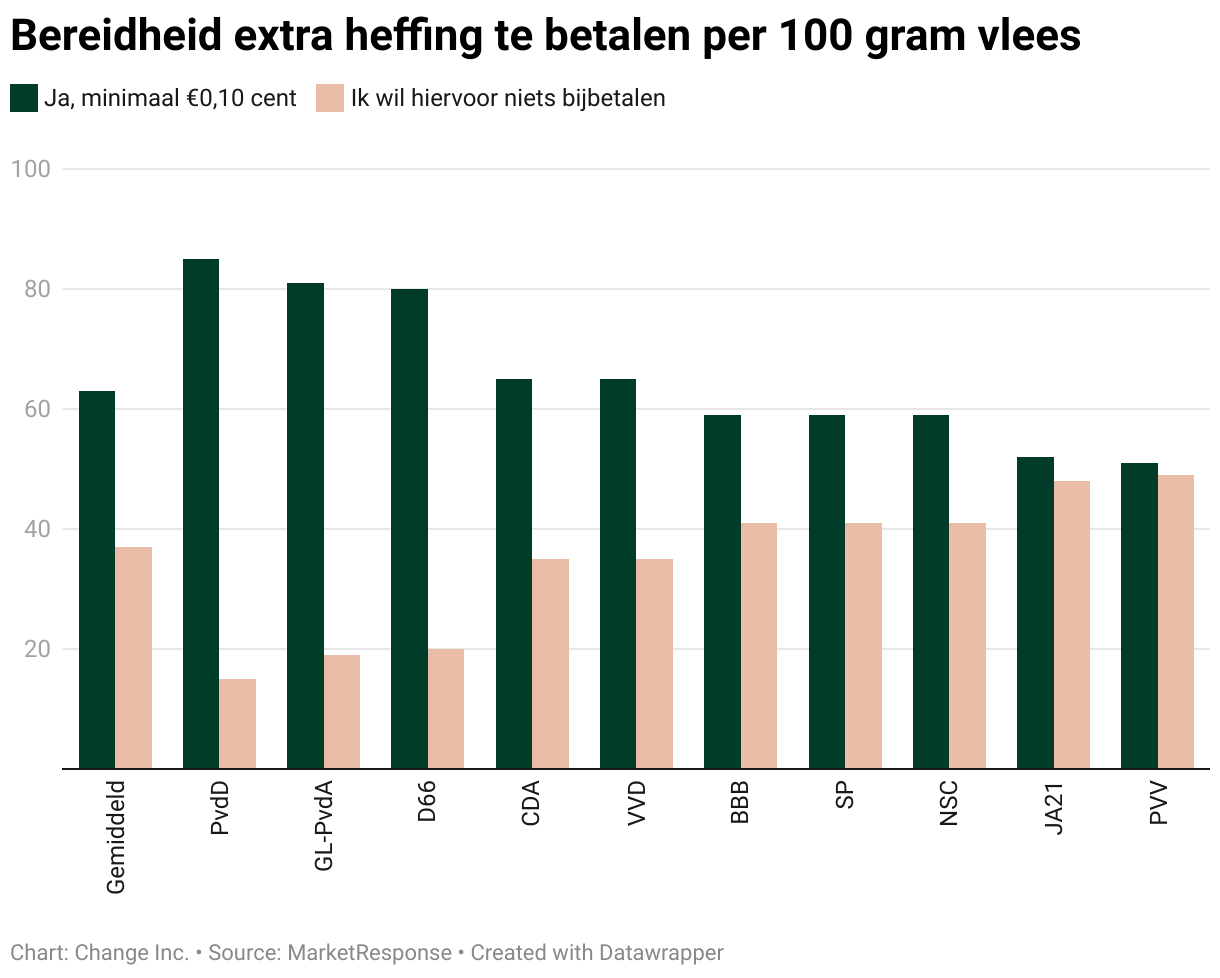 Bereidheid extra heffing te betalen per 100 gram vlees