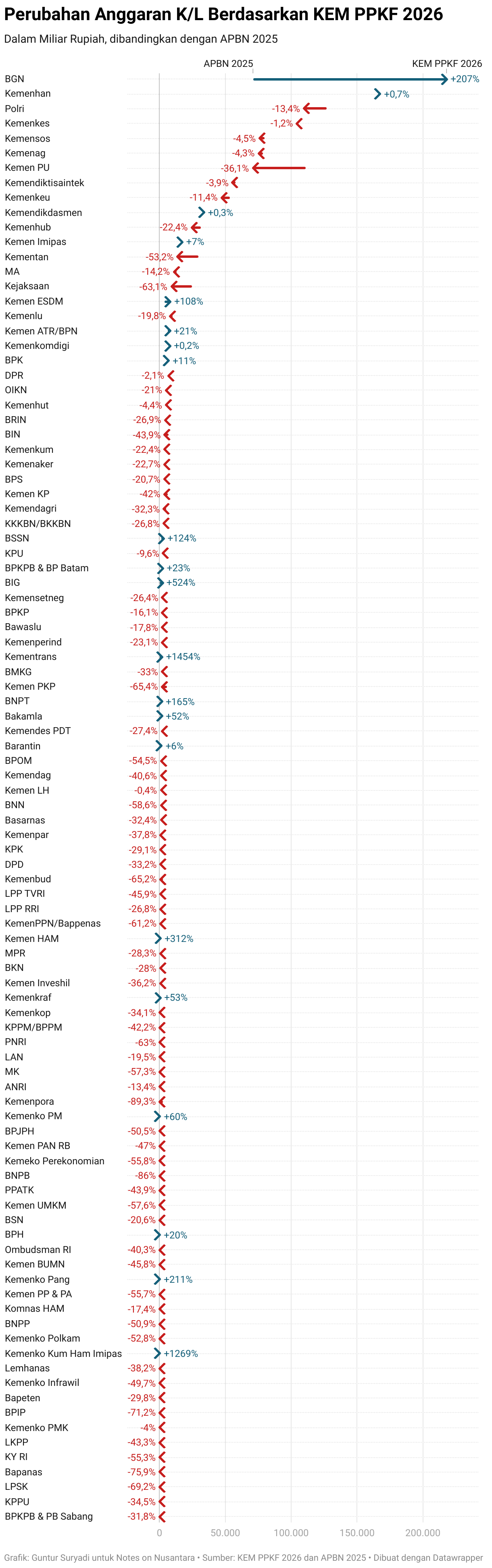 Dalam Miliar Rupiah, dibandingkan dengan APBN 2025