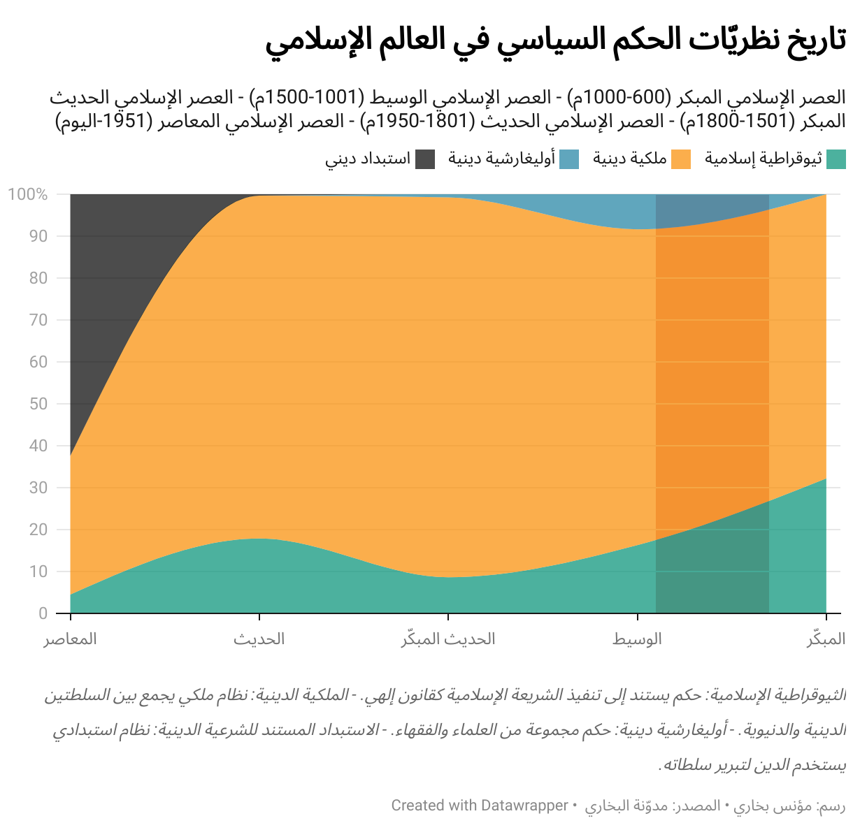العصر الإسلامي المبكر (600-1000م) - العصر الإسلامي الوسيط (1001-1500م) - العصر الإسلامي الحديث المبكر (1501-1800م) - العصر الإسلامي الحديث (1801-1950م) - العصر الإسلامي المعاصر (1951-اليوم)