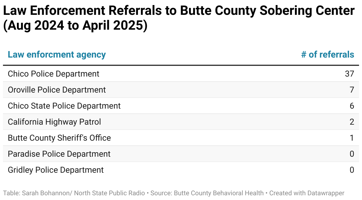 Law Enforcement Referrals to Butte County Sobering Center (Aug 2024 to April 2025)