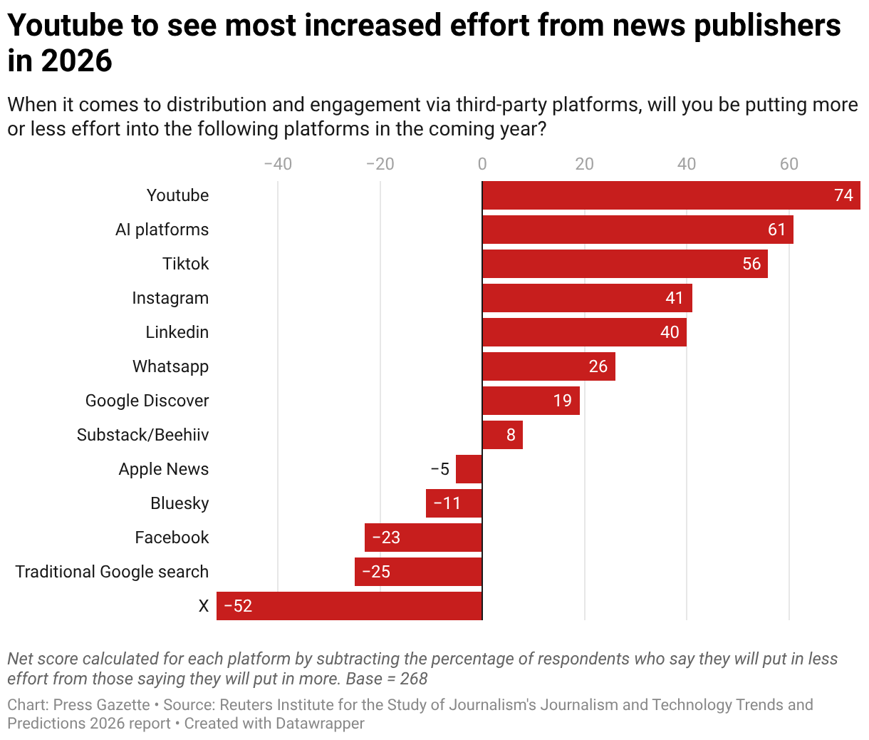 When it comes to distribution and engagement via third-party platforms, will you be putting more or less effort into the following platforms in the coming year?
