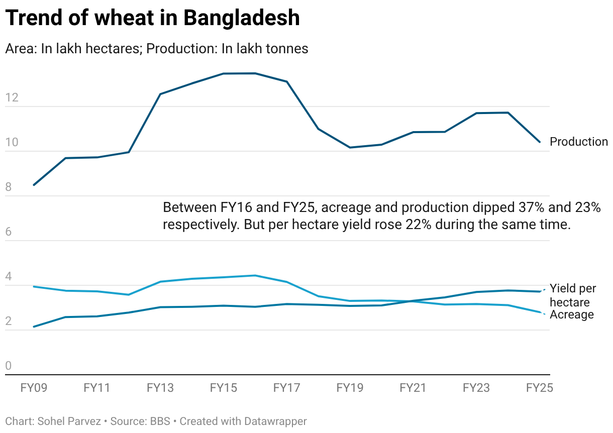 Area: In lakh hectares; Production: In lakh tonnes