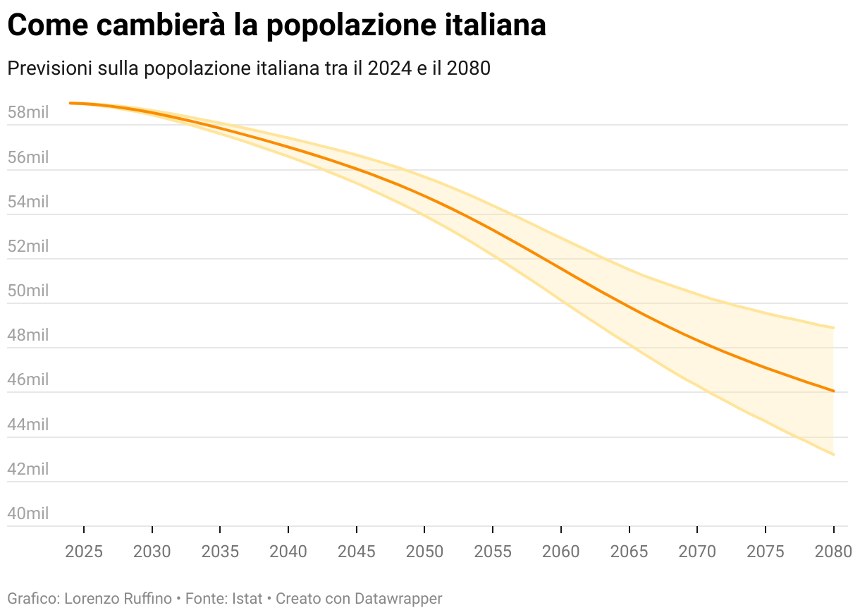 Previsioni sulla popolazione italiana tra il 2024 e il 2080