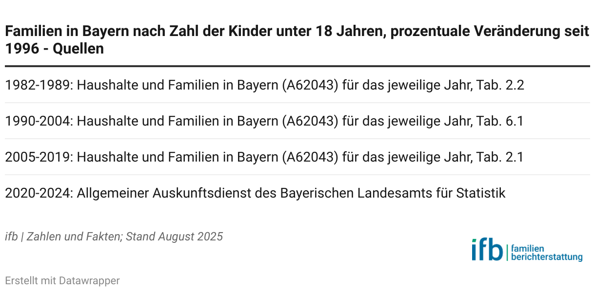 Familien in Bayern nach Zahl der Kinder unter 18 Jahren, prozentuale Veränderung seit 1996