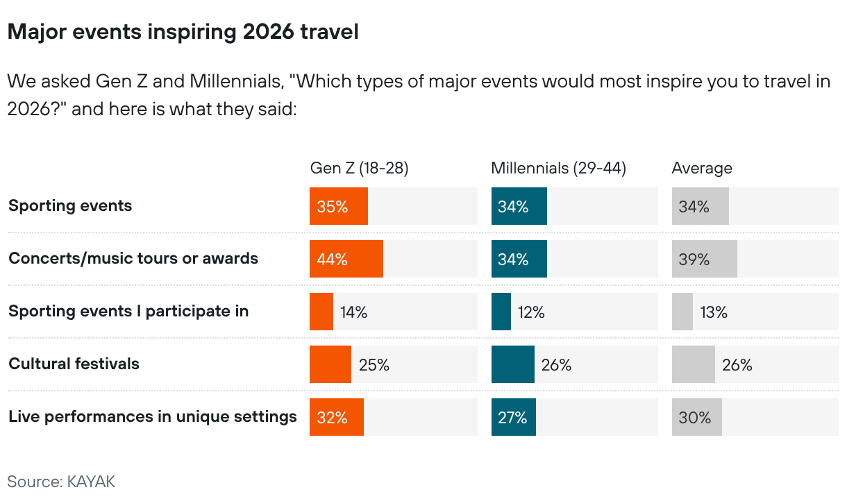 We asked Gen Z and Millennials, "Which types of major events would most inspire you to travel in 2026?" and here is what they said: