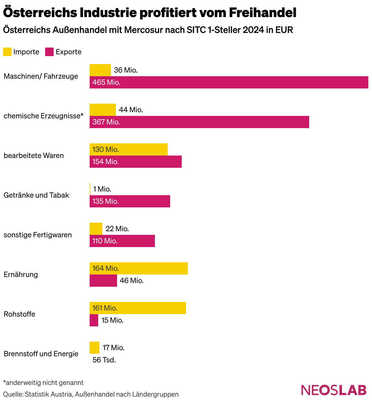 Österreichs Außenhandel mit Mercosur nach SITC 1-Steller 2024 in EUR