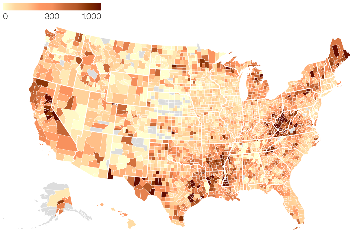 Outage minutes per customer by county, with three worst weeks for each county removed.