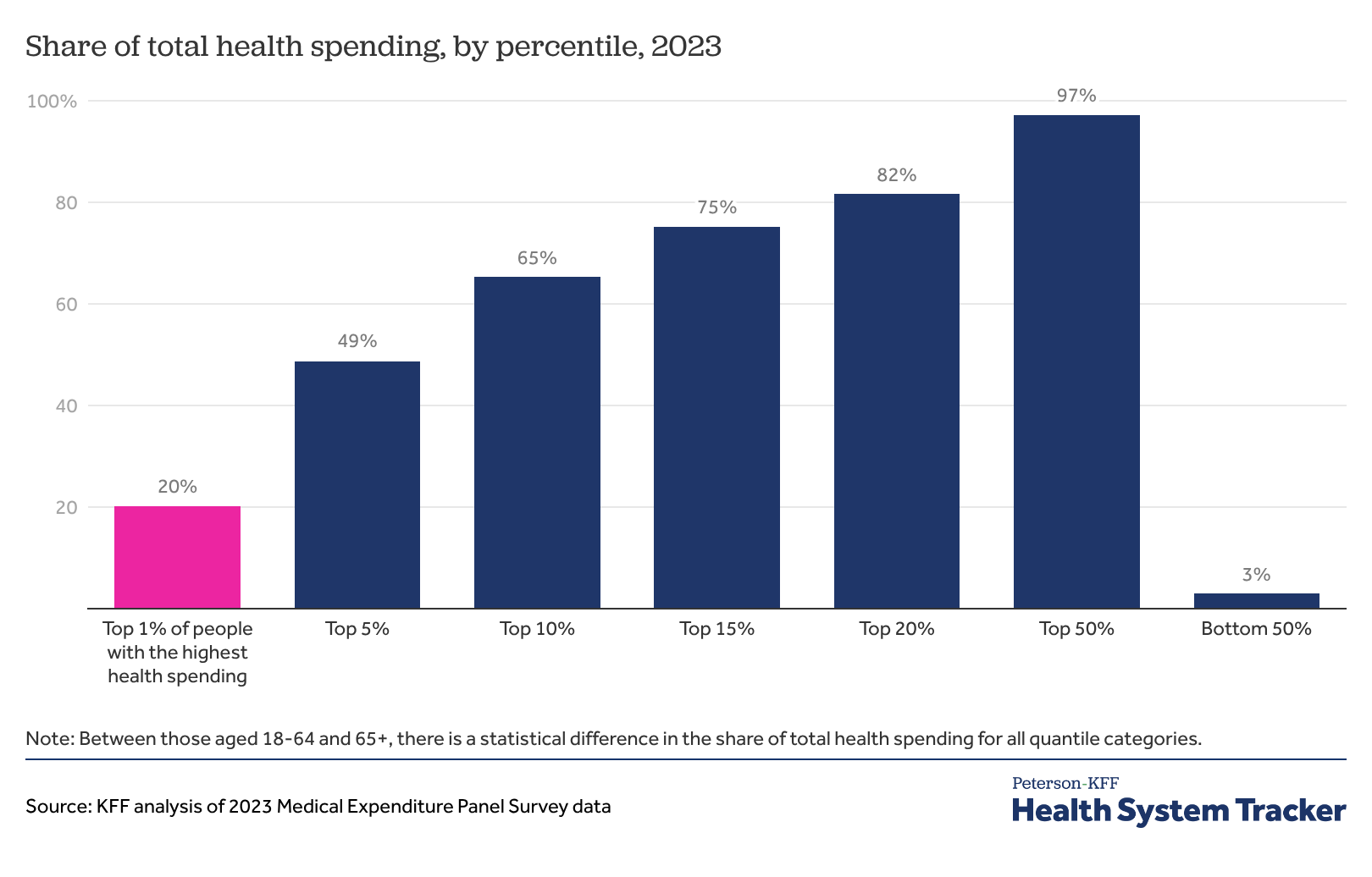 Share of total health spending, by percentile, 2023