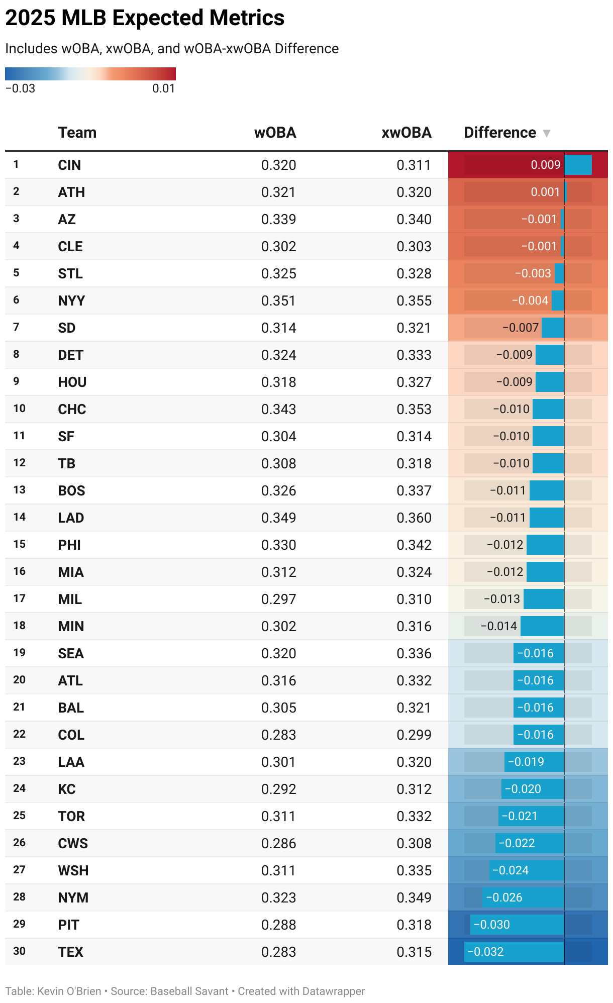 Includes wOBA, xwOBA, and wOBA-xwOBA Difference