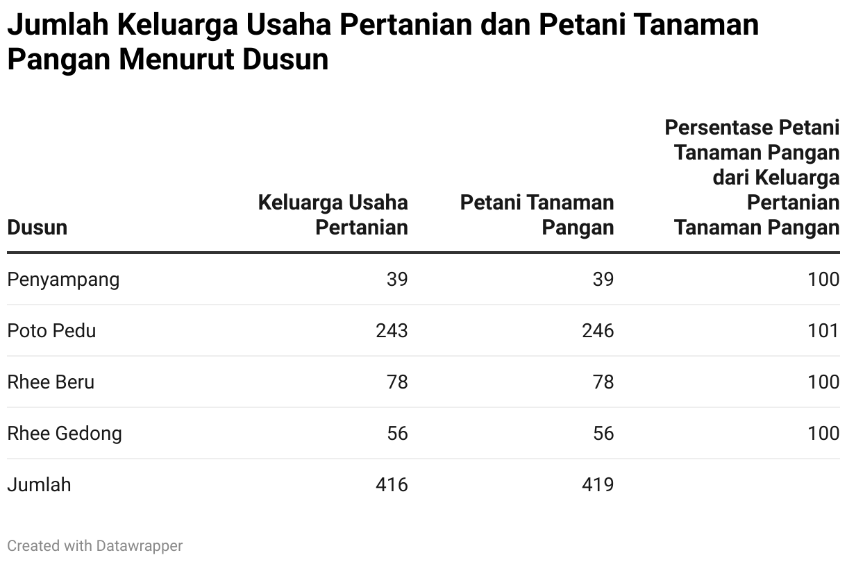 Jumlah Keluarga Usaha Pertanian dan Petani Tanaman Pangan Menurut Dusun