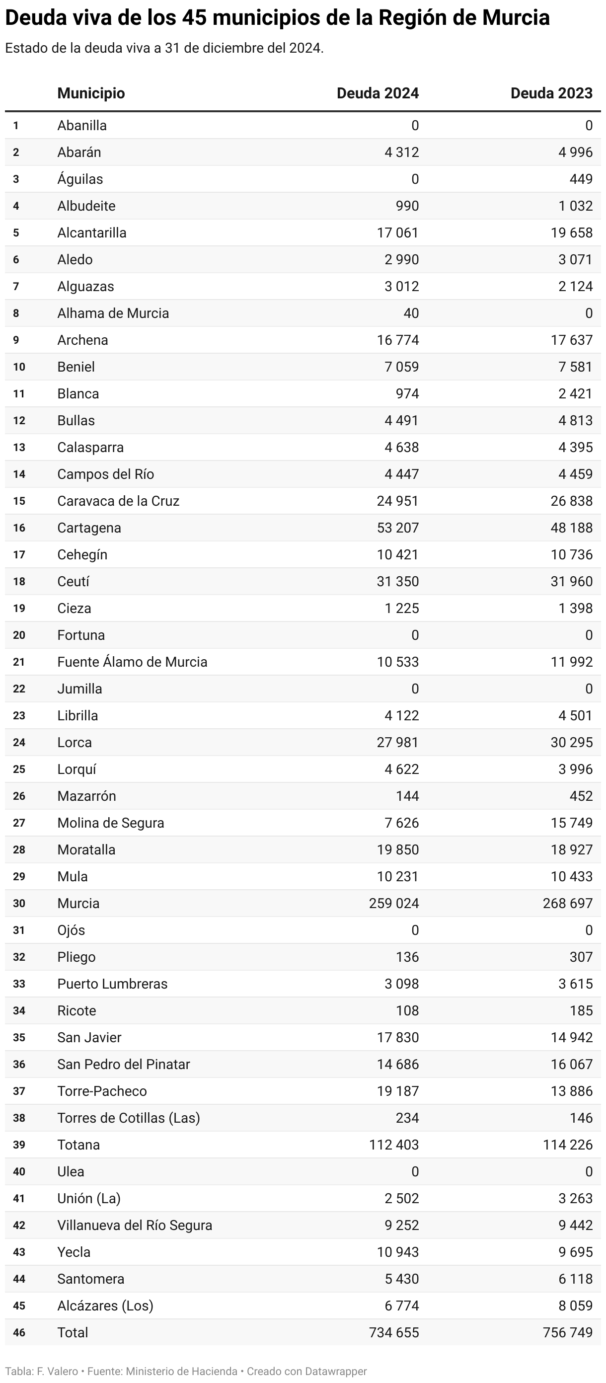 Estado de la deuda viva a 31 de diciembre del 2024.