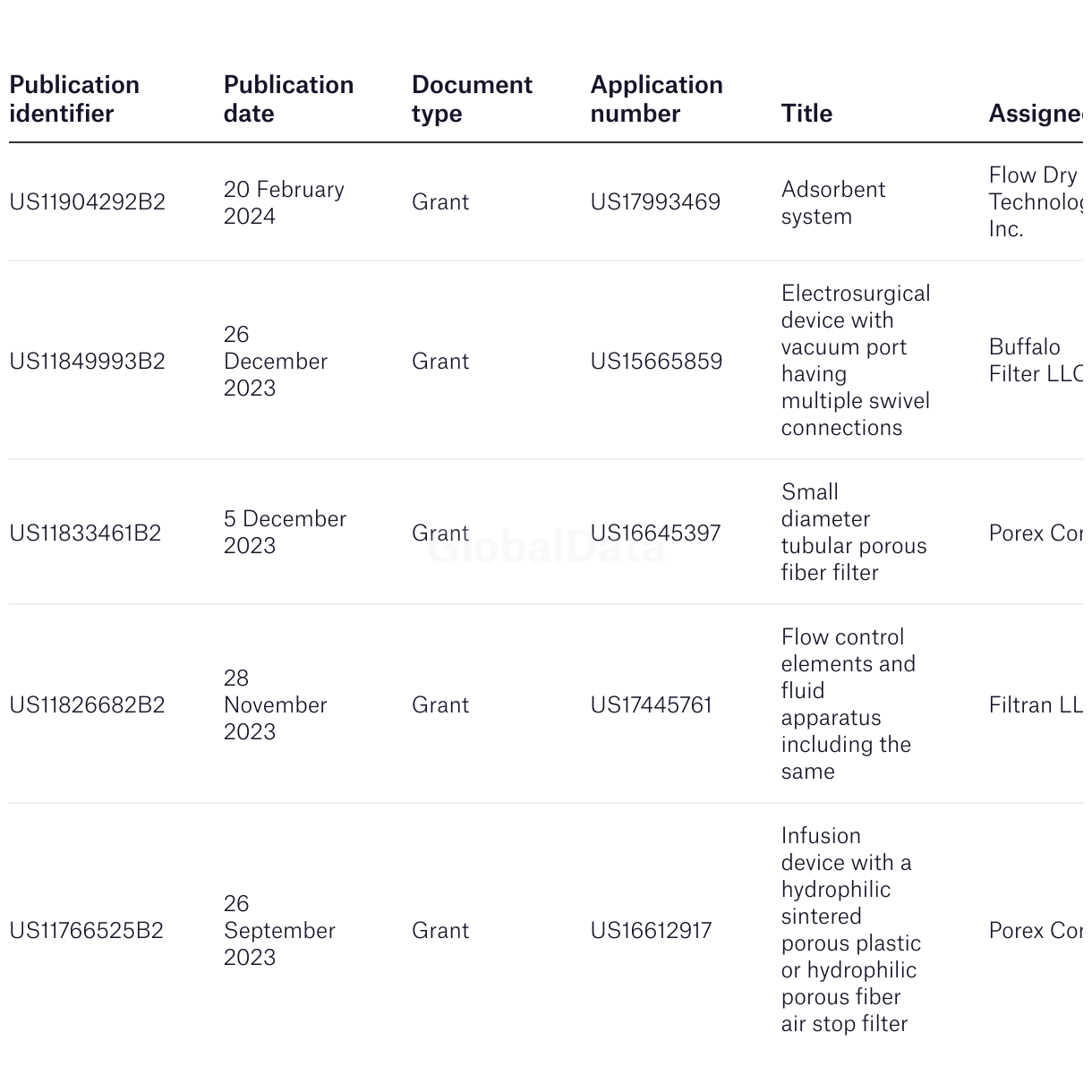 Filtration Group: recent grants