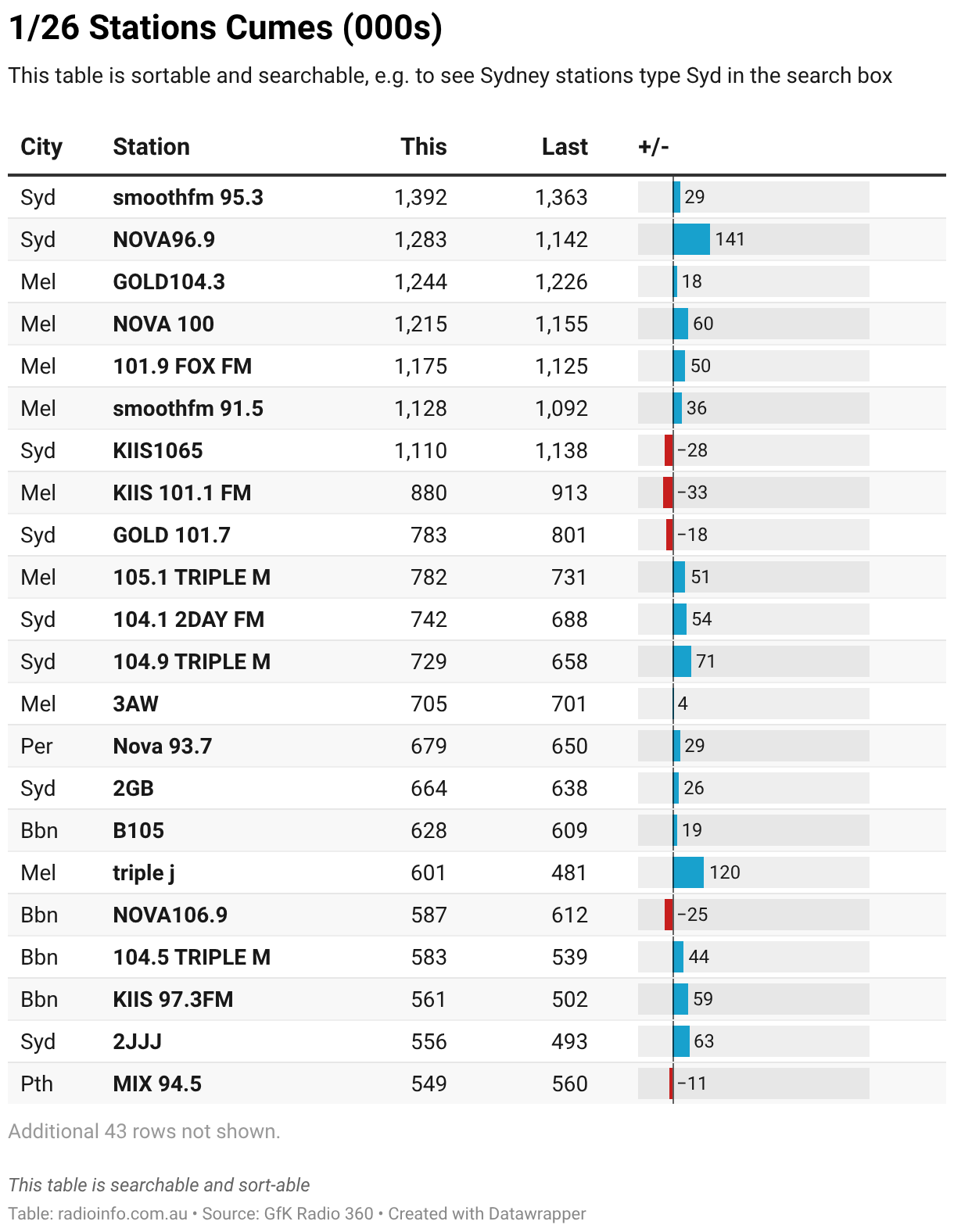 This table is sortable and searchable, e.g. to see Sydney stations type Syd in the search box