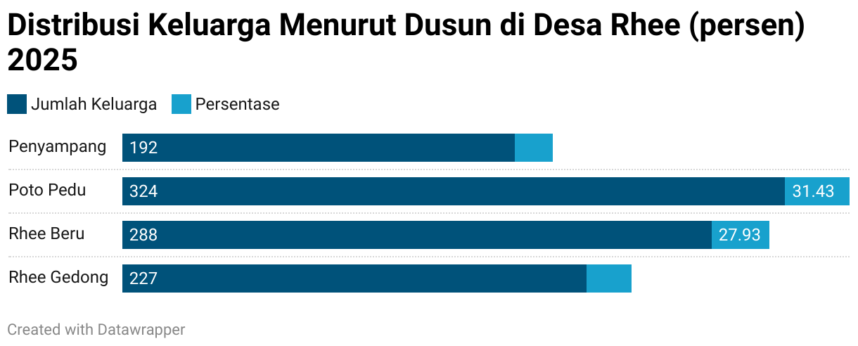 Distribusi Keluarga Menurut Dusun di Desa Rhee (persen) 2025