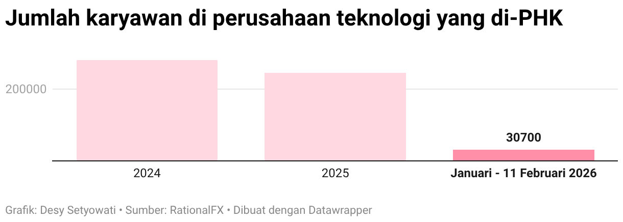 Jumlah karyawan di perusahaan teknologi yang di-PHK