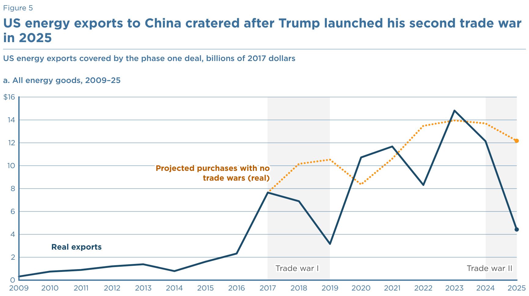 US energy exports covered by the phase one deal, billions of 2017 dollars a. All energy goods, 2009–25