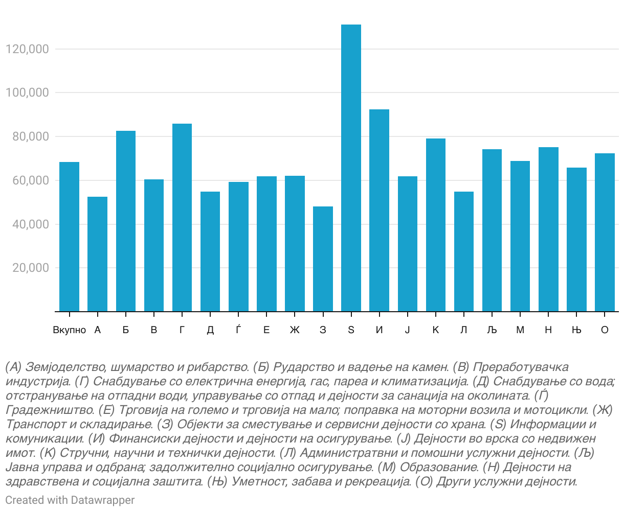 (А) Земјоделство, шумарство и рибарство. (Б) Рударство и вадење на камен. (В) Преработувачка индустрија. (Г) Снабдување со електрична енергија, гас, пареа и климатизација. (Д) Снабдување со вода; отстранување на отпадни води, управување со отпад и дејности за санација на околината. (Ѓ) Градежништво. (Е) Трговија на големо и трговија на мало; поправка на моторни возила и мотоцикли. (Ж) Транспорт и складирање. (З) Објекти за сместување и сервисни дејности со храна. (Ѕ) Информации и комуникации. (И) Финансиски дејности и дејности на осигурување. (Ј) Дејности во врска со недвижен имот. (К) Стручни, научни и технички дејности. (Л) Администратвни и помошни услужни дејности. (Љ) Јавна управа и одбрана; задолжително социјално осигурување. (М) Образование. (Н) Дејности на здравствена и социјална заштита. (Њ) Уметност, забава и рекреација. (О) Други услужни дејности.