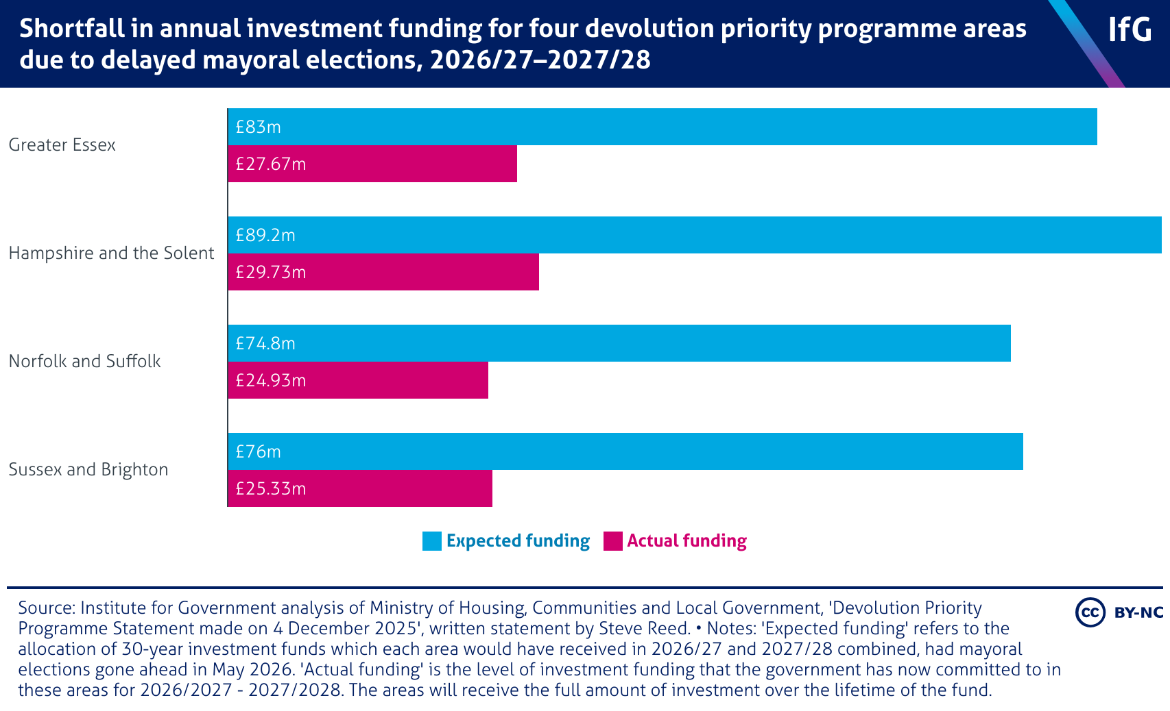 Shortfall in annual investment funding for four devolution priority programme areas due to delayed mayoral elections, 2026/27–2027/28