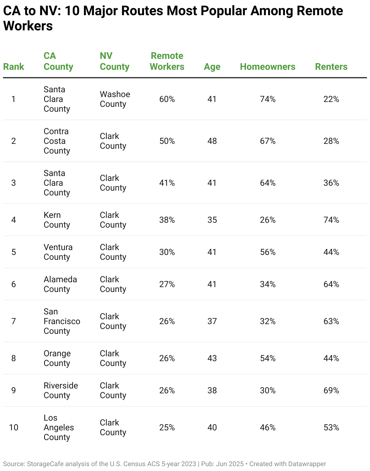 CA to NV: 10 Major Routes Most Popular Among Remote Workers