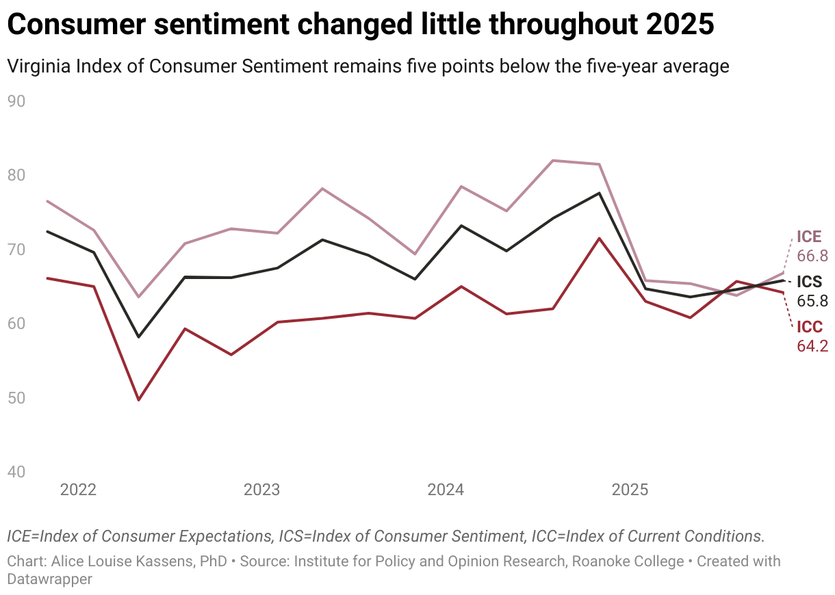 Virginia Index of Consumer Sentiment remains five points below the five-year average