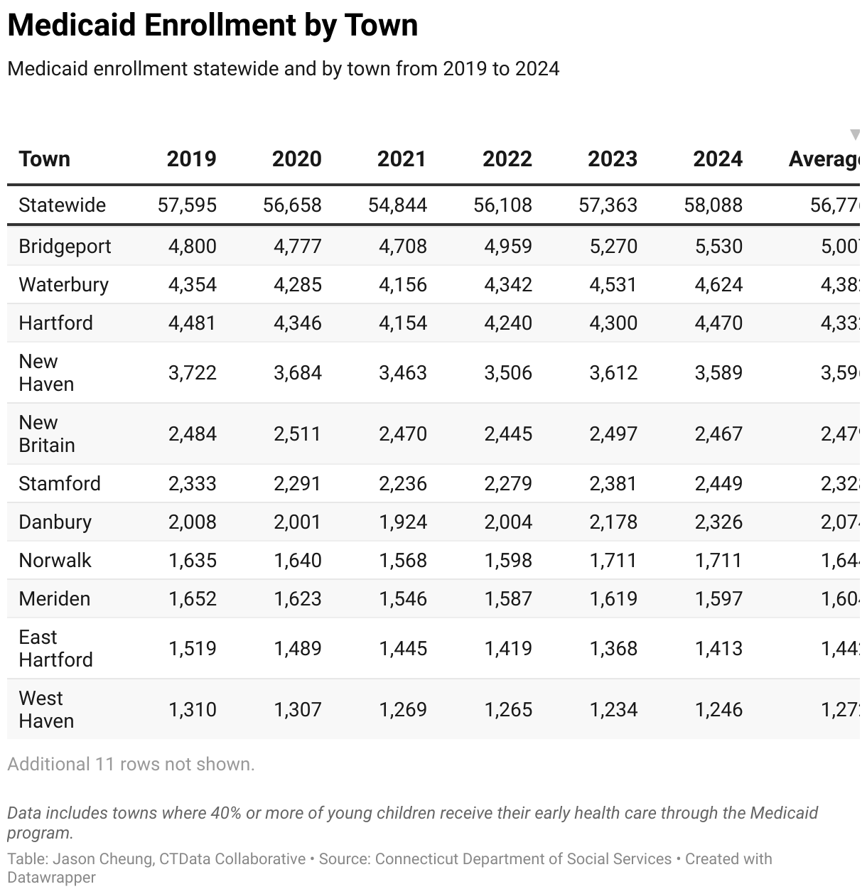 Medicaid enrollment statewide and by town from 2019 to 2024