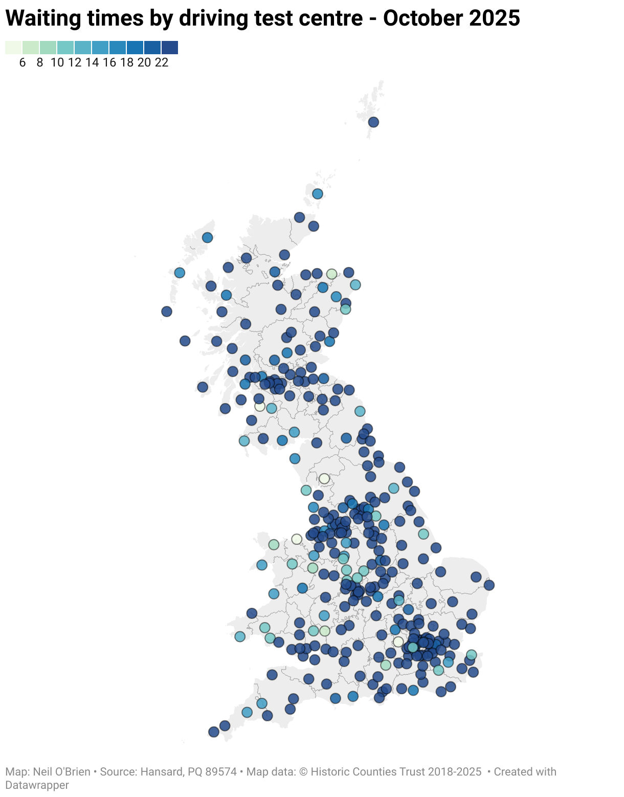 Waiting times by driving test centre - October 2025