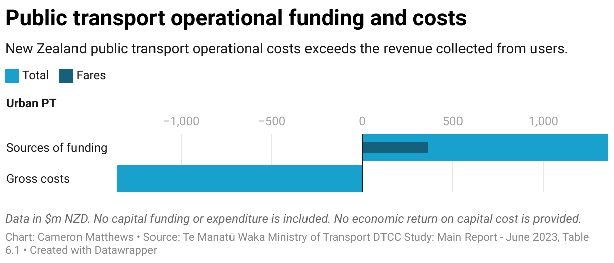 New Zealand public transport operational costs exceeds the revenue collected from users.
