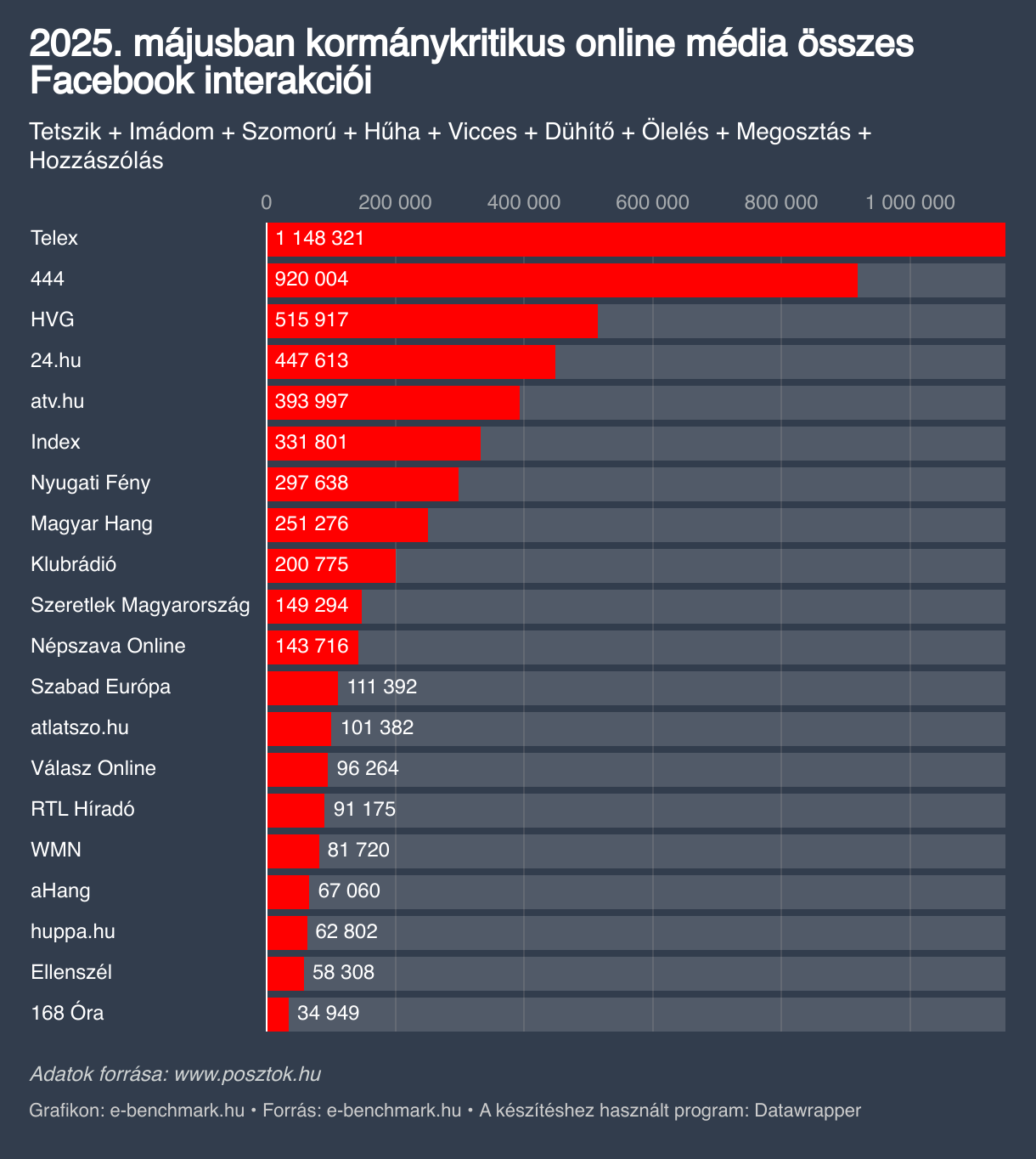 2025. májusban kormánykritikus online média összes Facebook interakciói