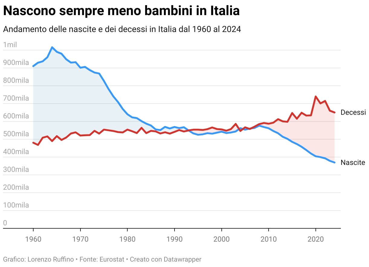 Andamento delle nascite e dei decessi in Italia dal 1960 al 2024