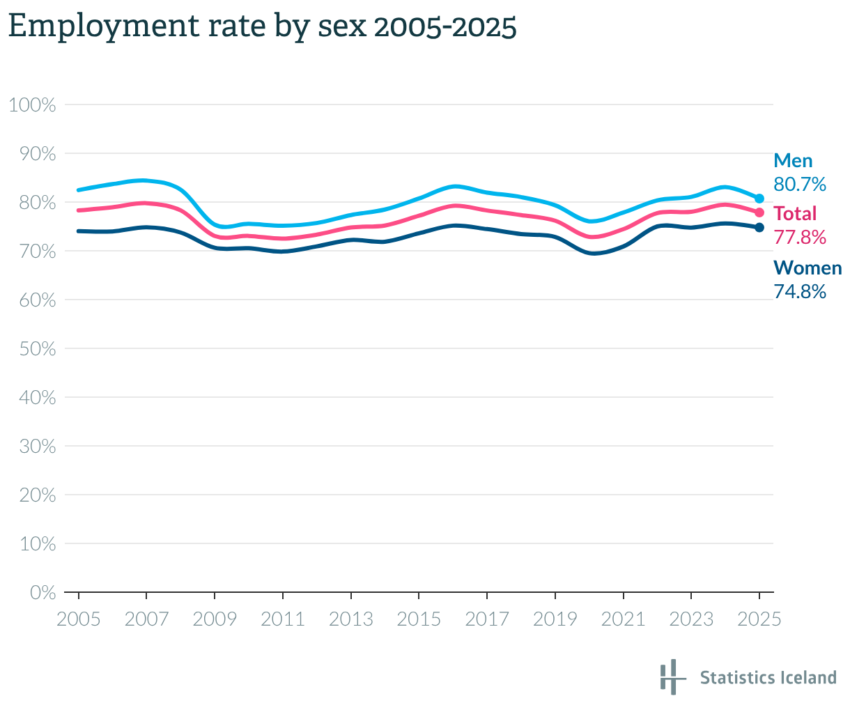 Employment rate by sex 2005-2025