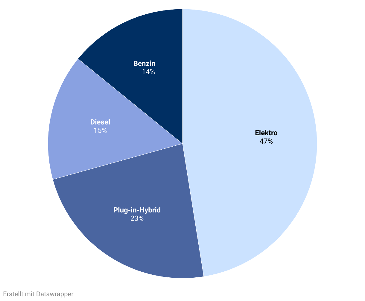 Marktanteil der verschiedenen Antriebsarten im Segment (gerundet) von Januar bis November 2024
