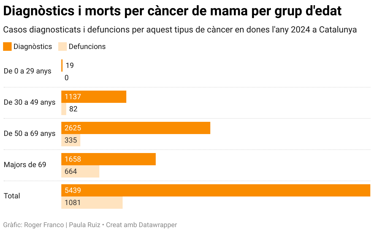 Casos diagnosticats i defuncions per aquest tipus de càncer en dones l'any 2024 a Catalunya