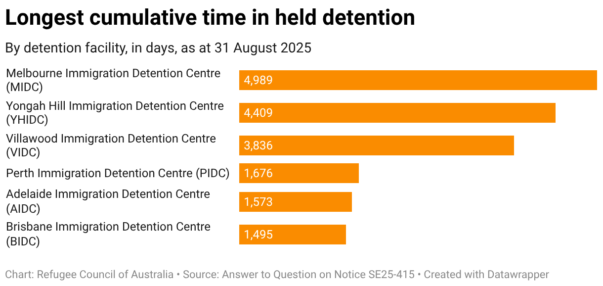By detention facility, in days, as at 31 August 2025