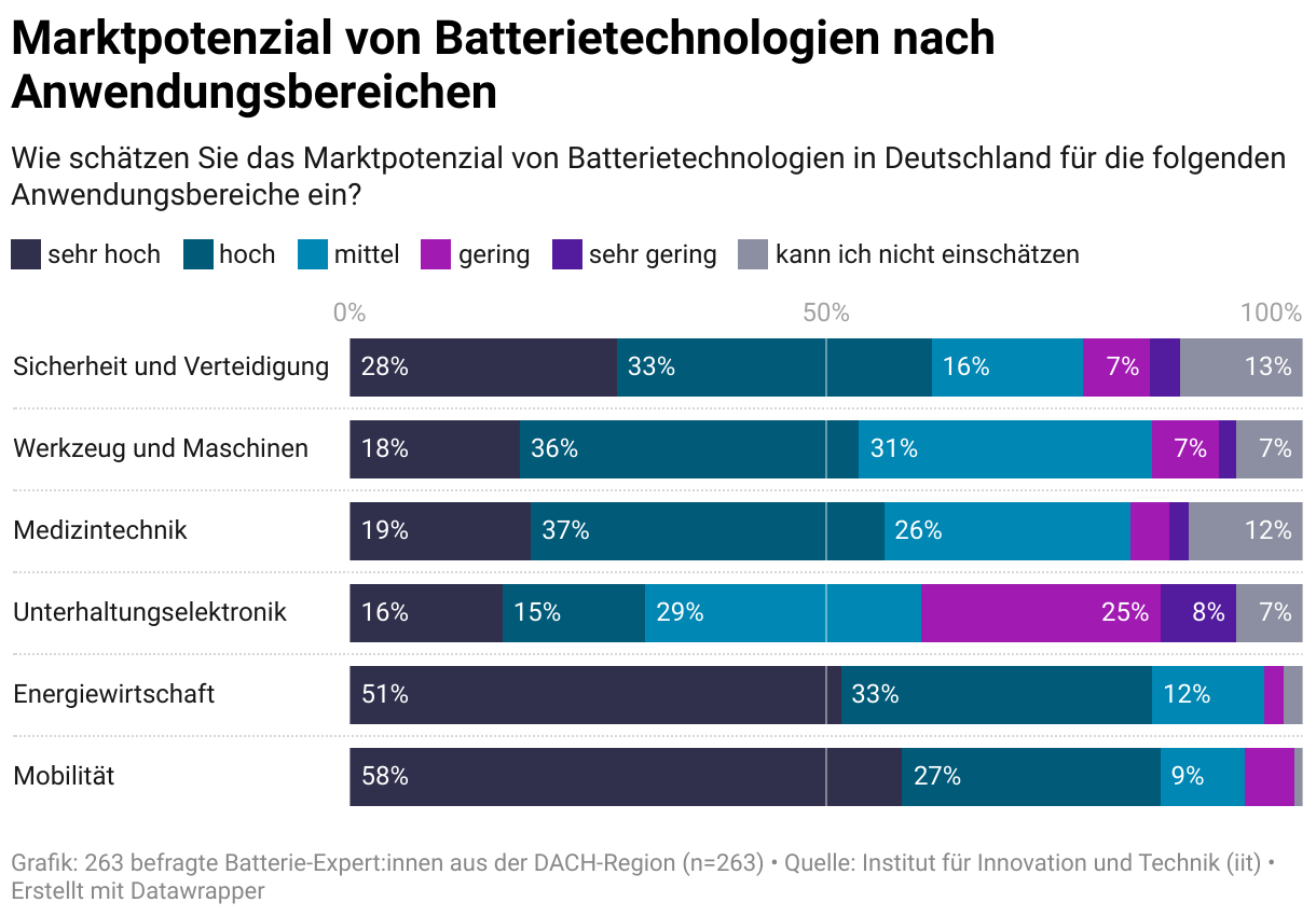 Wie schätzen Sie das Marktpotenzial von Batterietechnologien in Deutschland für die folgenden Anwendungsbereiche ein?