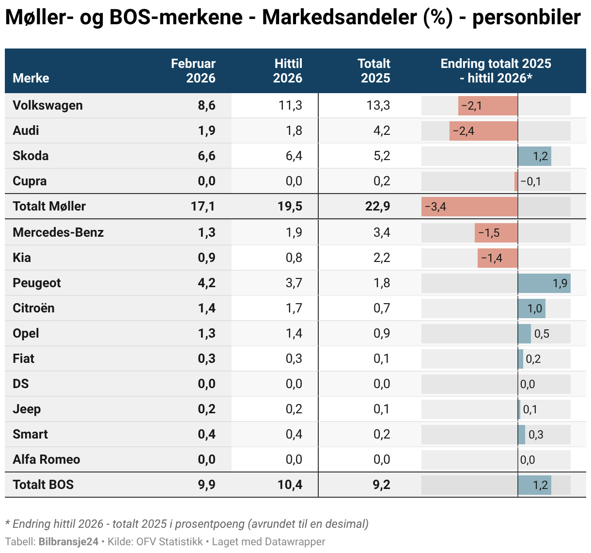 Møller- og BOS-merkene - Markedsandeler (%) - personbiler