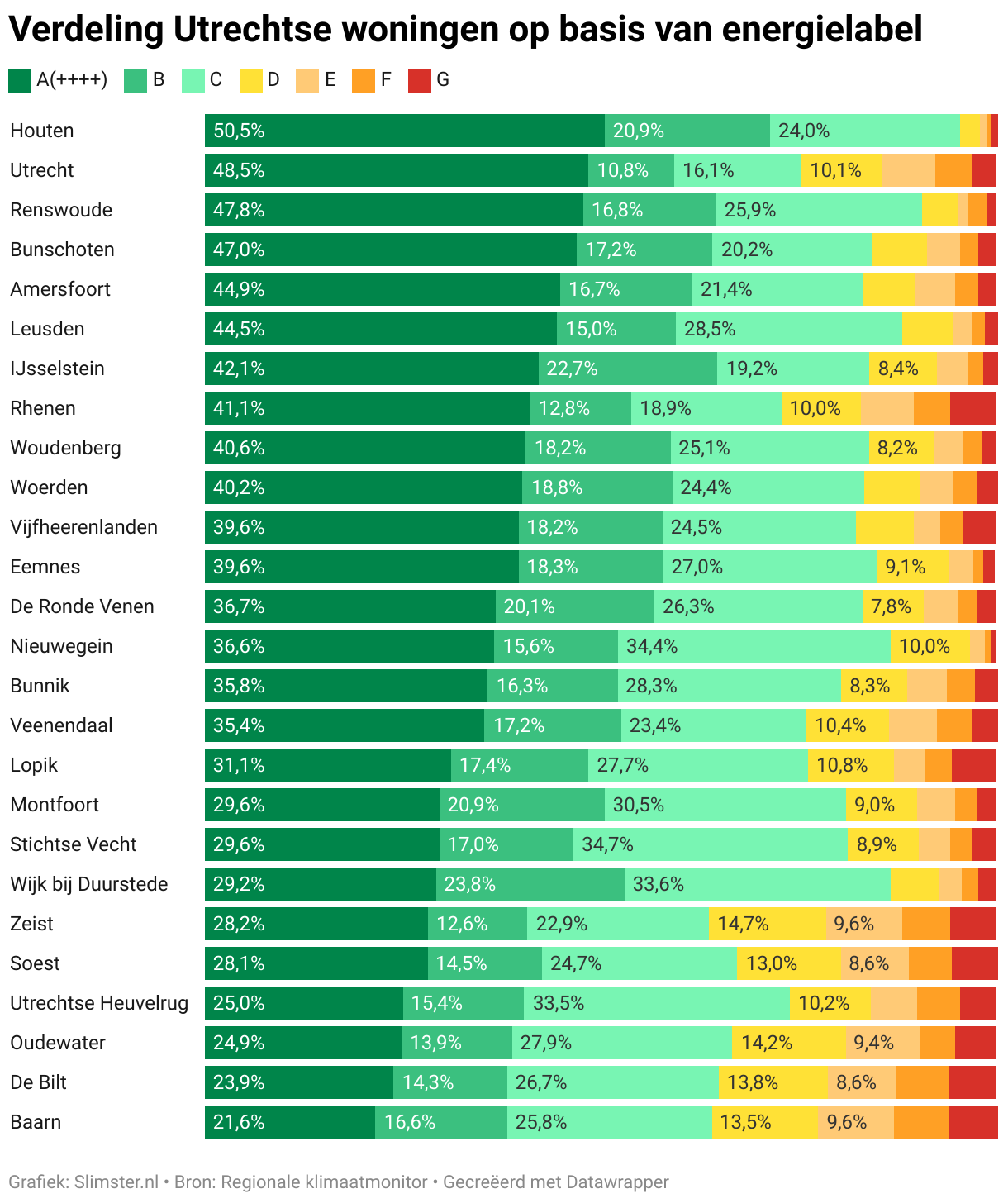 Verdeling Utrechtse woningen op basis van energielabel