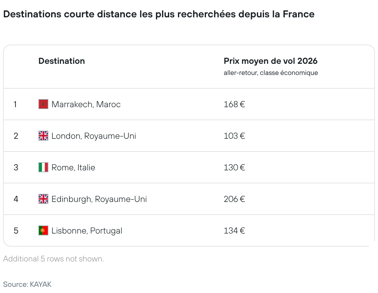 Destinations courte distance les plus recherchées depuis la France