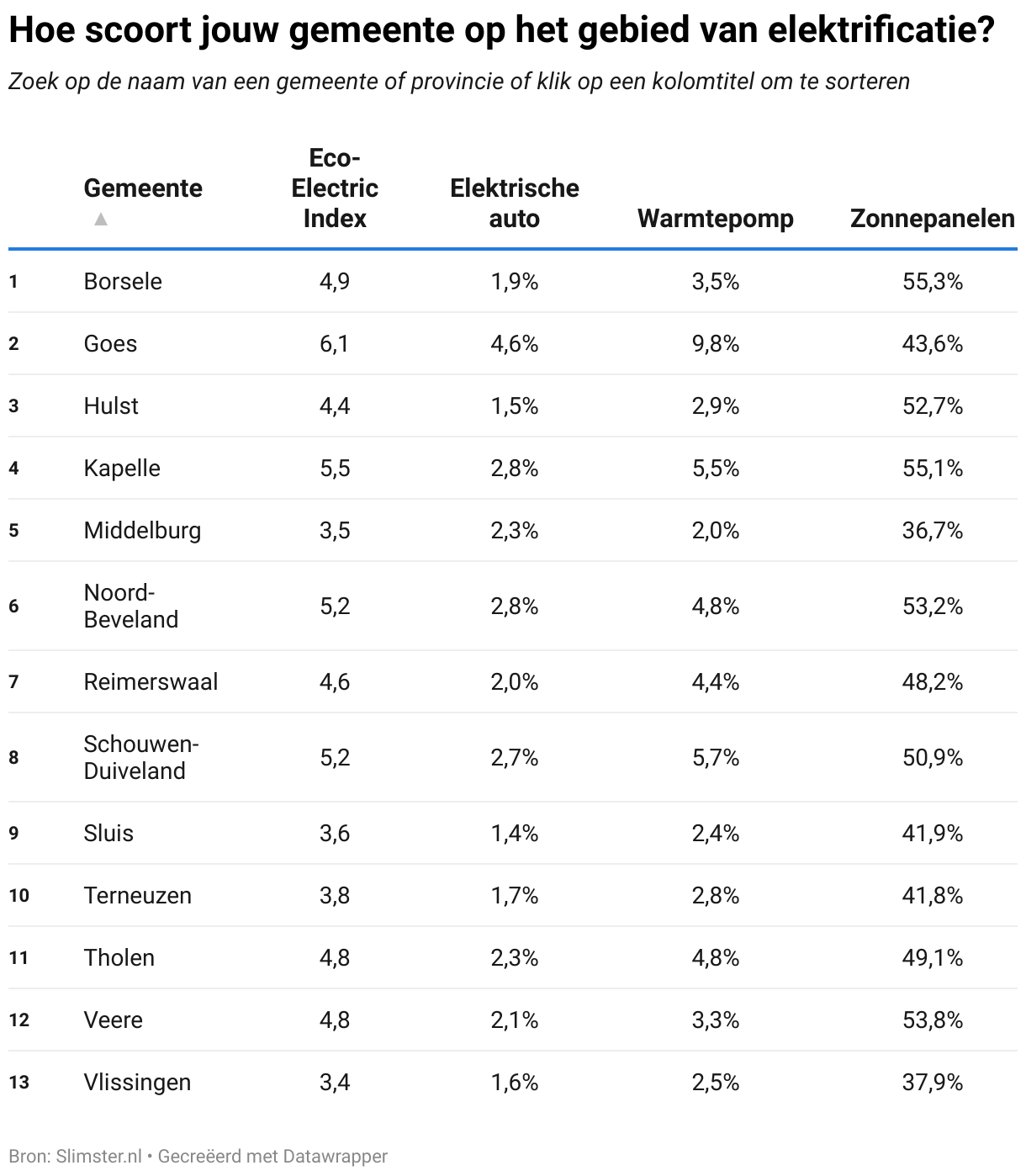 Zoek op de naam van een gemeente of provincie of klik op een kolomtitel om te sorteren