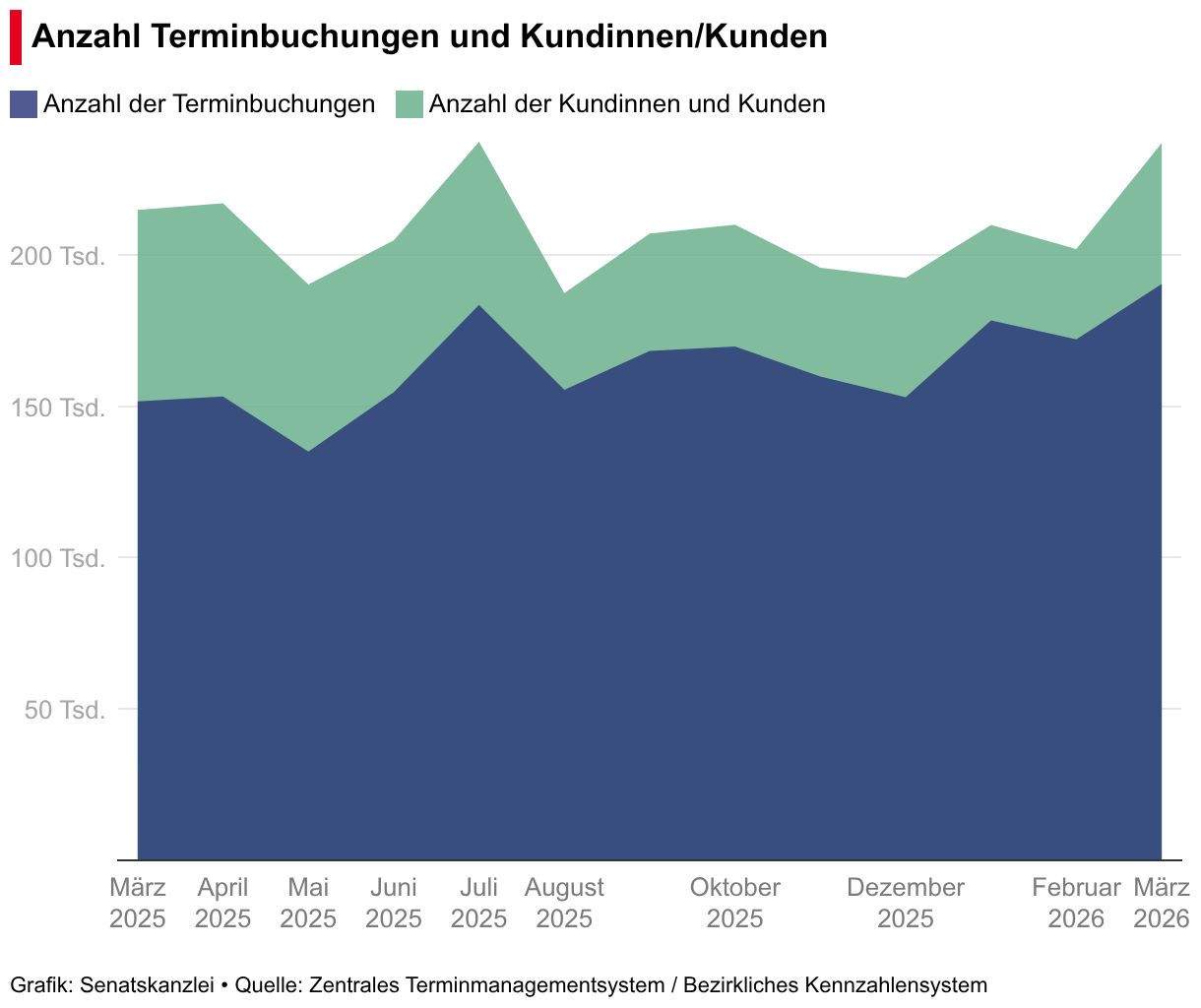 Anzahl Terminbuchungen und Kundinnen/Kunden