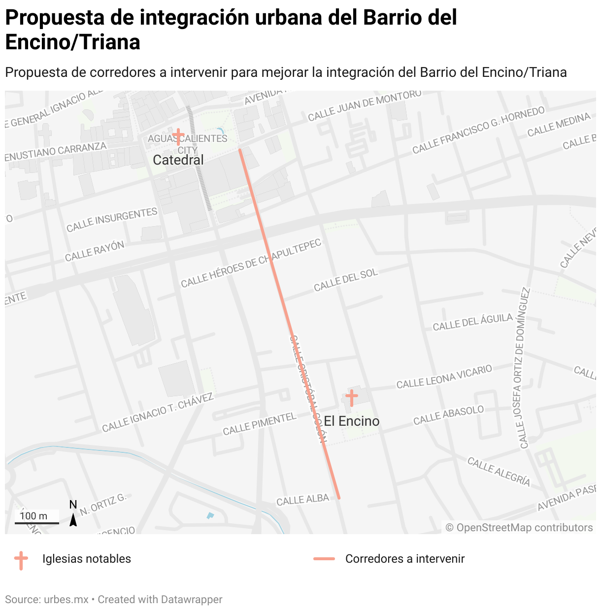 Propuesta de corredores a intervenir para mejorar la integración del Barrio del Encino/Triana