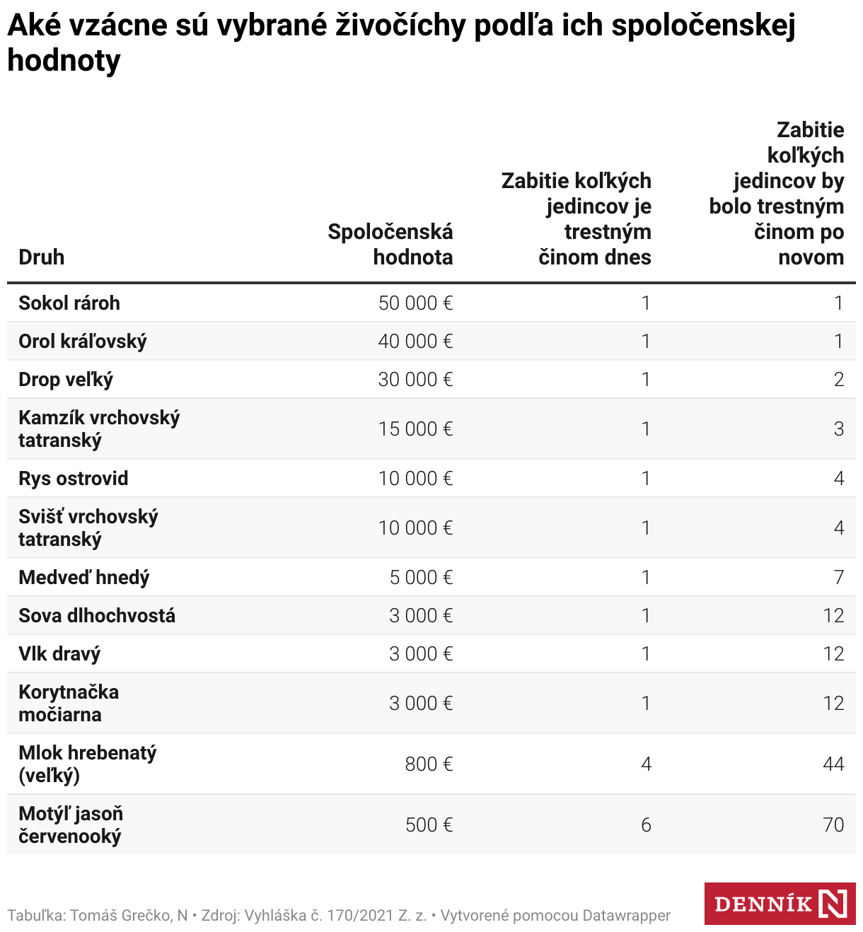 Aké vzácne sú vybrané živočíchy podľa ich spoločenskej hodnoty